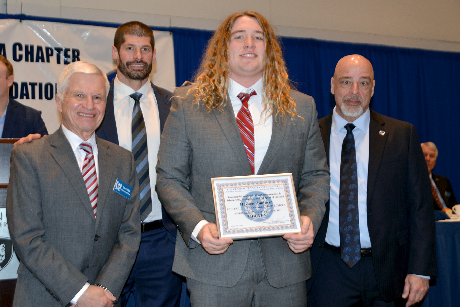 The Central Pennsylvania Chapter of the National Football Foundation and College Hall of Fame held their annual Scholar Athletes Awards Banquet on Sunday, March 22nd, and the Central Clarion Wildcats’ Hayden Hindman and Keystone’s Jake Henry, who also wrestled for the Wildcats in addition to playing for the Panthers, received their respective program’s honor.